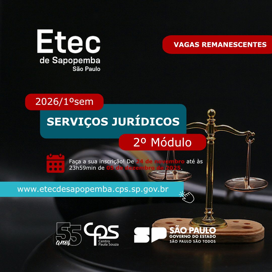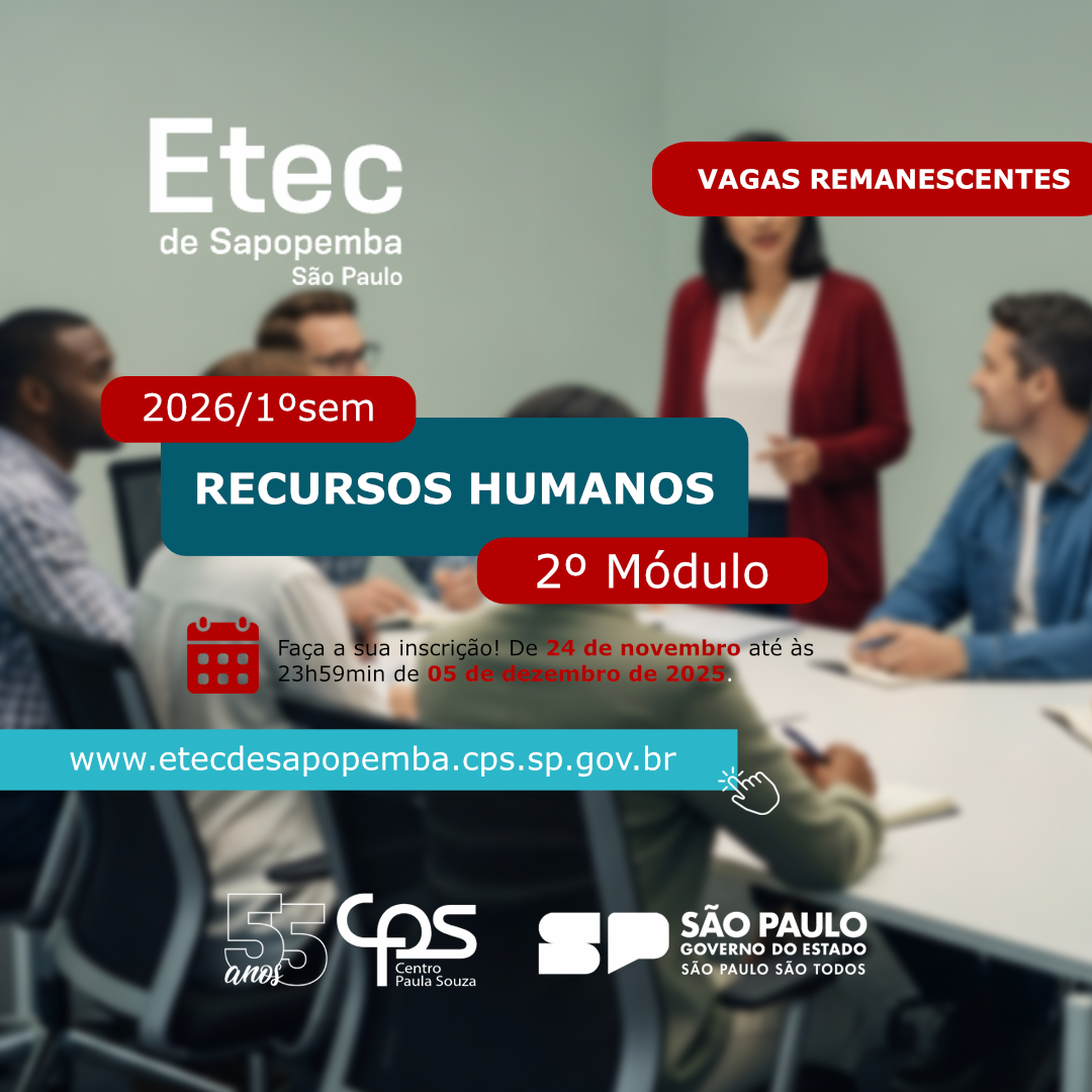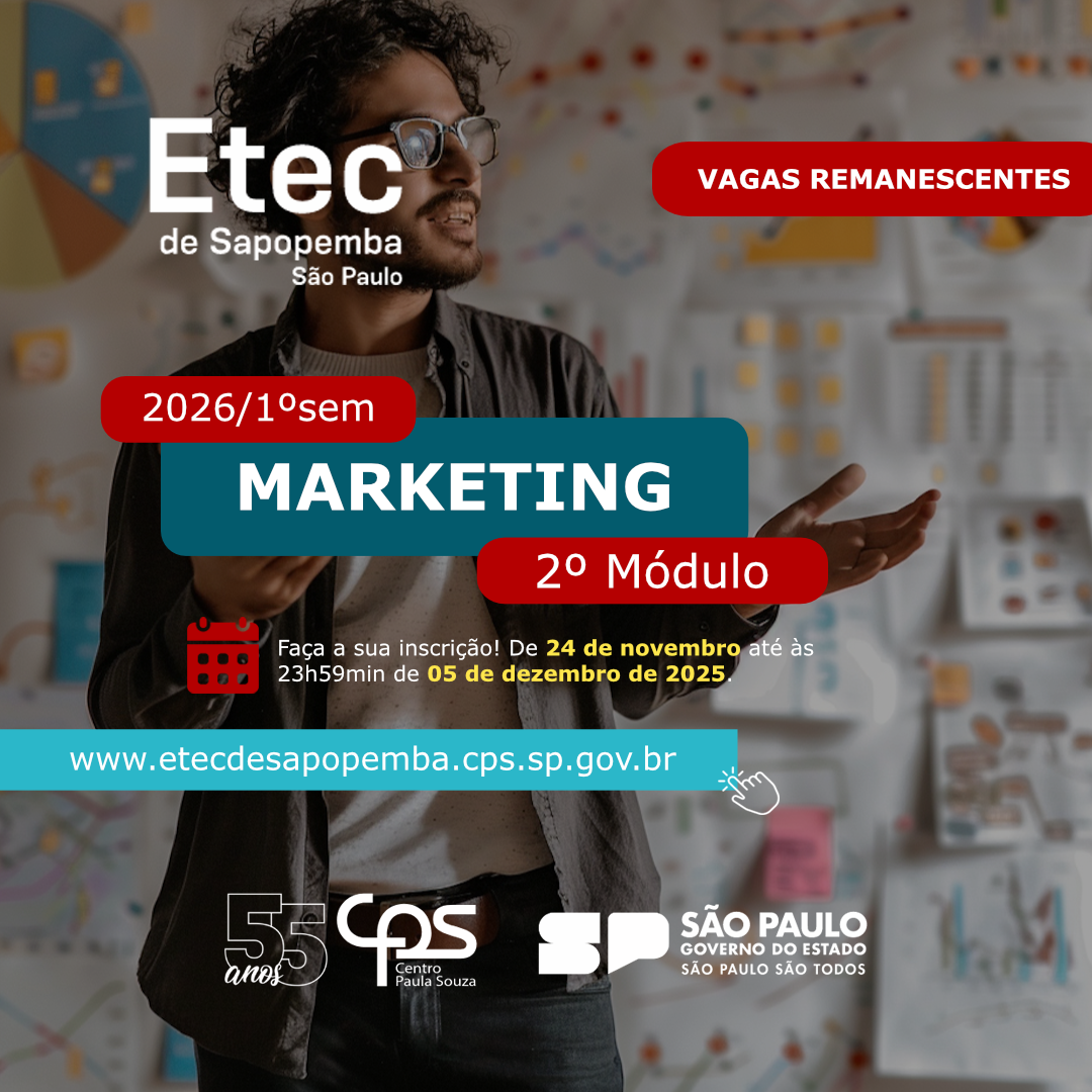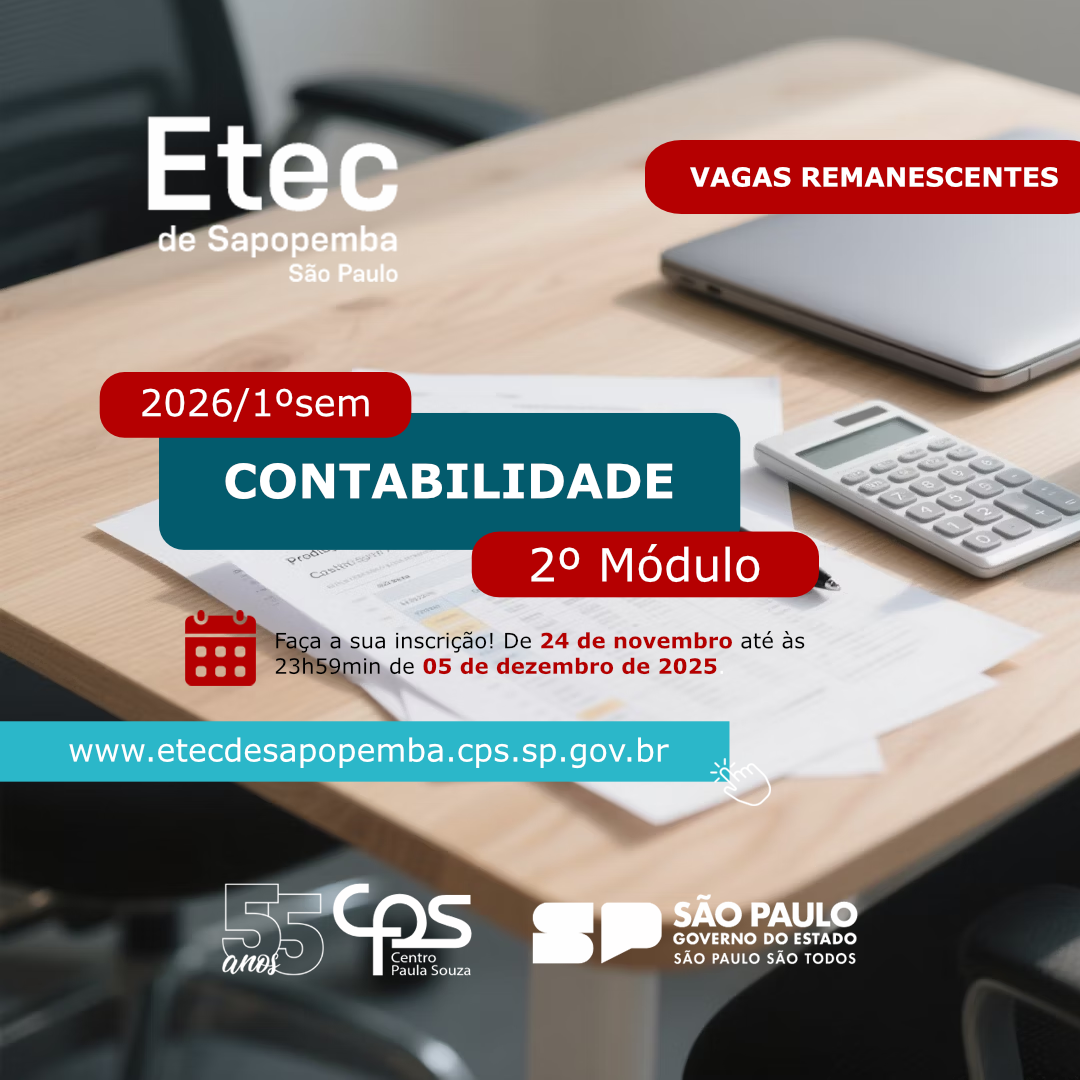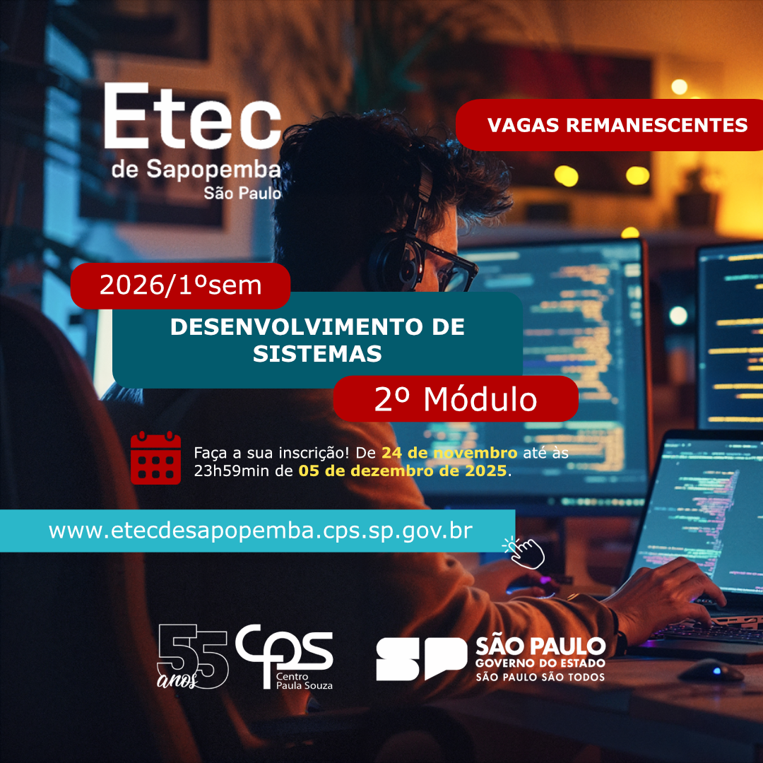 A Secretaria Acadêmica da Escola Técnica Estadual (Etec) de Sapopemba, na zona leste da Capital paulista, acaba de divulgar o Edital de abertura do processo seletivo para o preenchimento de vagas remanescentes de 2º módulo dos cursos técnicos, oferecidos pela unidade de ensino, no primeiro semestre de 2026.
